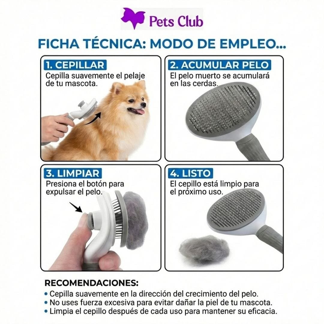 Cepillo Carda Autolimpiable: El primer paso para evitar pelos en la casa. Elimina el pelo muerto directamente de tu mascota con cerdas suaves. ¿Lo mejor? Presionas un botón y el pelo sale solo.