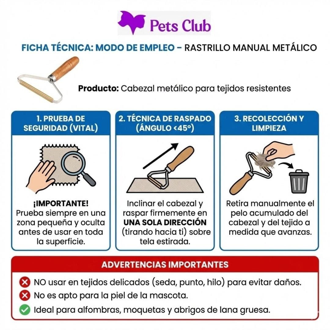 Rastrillo Profesional para Alfombras: El «arma secreta» para los pelos más rebeldes e incrustados. Ideal para alfombras y textiles pesados donde otros métodos fallan.